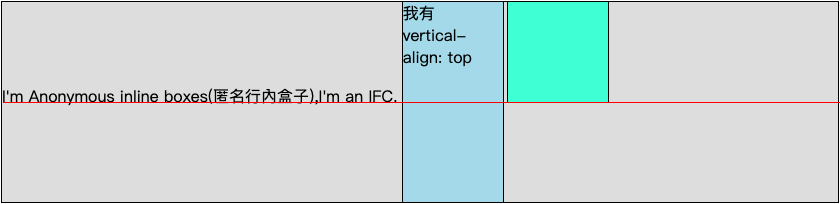 『使元素及其後代元素的頂部與整行的 line box 頂部對齊。』,意思是要我們拿藍色方塊的頂部去跟整行 line box 的頂部對齊,藍色方塊的頂部肯定沒什麼問題,那 “整行 line box 的頂部” 在哪呢?